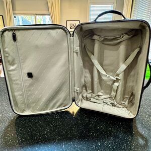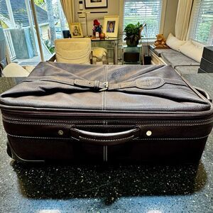 Excellent condition Lancel Leather Rolling Carry On Bag. brown leather. Telescoping handles. Two large separate compartments with tie downs. Smaller compartments as well. Very little signs of wear. From smoke free pet free home.