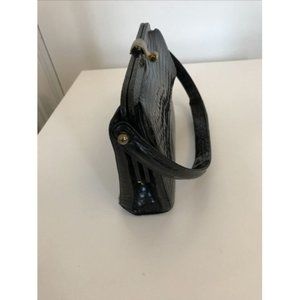 Lancel Navy Crocodile Leather Boxy Hinged Top Bag