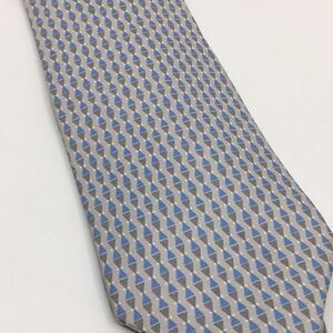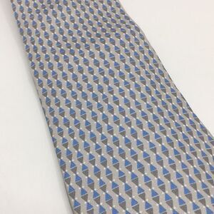 Lancel Paris made in Italy 100% silk tie. In excellent preloved condition. Small geometric shapes. To me this tie is a light gray with dark gray and blue arrows. Nice and conservative tie but with a great pop of color.