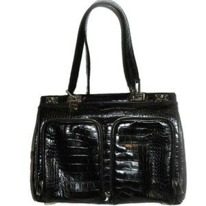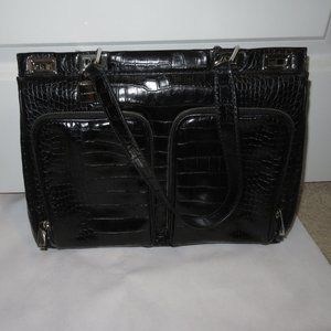 Lancel Paris Croc Embossed Black Business Shoulder Bag With Lock