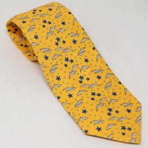 Lancel Paris Necktie Dolphin Starfish Silk Yellow Whimsy Marine Mammal Ocean Fun