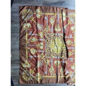 Lancel Rolled Hem Silk Scarf Decorative Scroll Keys Brown Square 34" x 34.5"