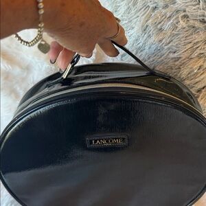 Elegant black cosmetic bag with gold accents. Perfect for travel or daily use.