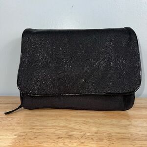 Lancôme, Black Glitter Make up Cosmetics Travel Pouch Zip Top & Flap Closure