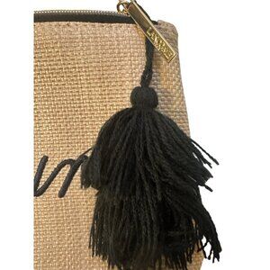 💖Lancôme Bonjour Embroidered Straw Cosmetic Bag With Black Tassel, Zipper Closur