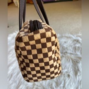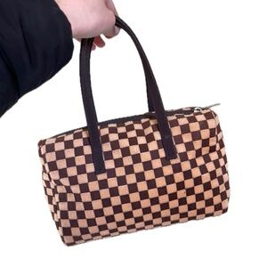 In preloved but good condition, Stylish Lancôme checkered brown handbag perfect for any occasion. Features a classic design with durable handles. Very y2k and trendy, great size. Can be used as a purse or make up bag. Please let me know of you have any additional questions.