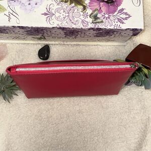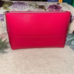 Lancôme Paris Fuchsia Silver Tone Faux Leather Cosmetic Toiletry Travel Bag