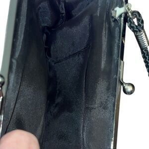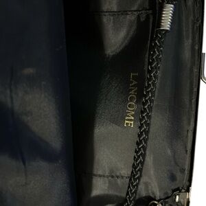 Chic Lancôme beaded evening bag with gold floral design. Perfect on inside. Black interior. Kiss Lock closure. Ideal for stylish outings. Bag is like new condition. Very long rope strap. Smoke free home. 9” X 5.5” and 48” strap