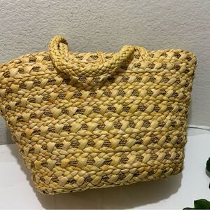 Lancome Extra Large Straw Woven Braided Tote Shoulder Bag 18x11x7"