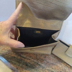 Lancome Metallic Gold Evening Mini Bag and Compact Mirror Carrier