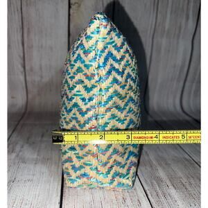 Lancome Paris Makeup Blue Beige Woven Straw Large Straw Cosmetic Bag Zipper