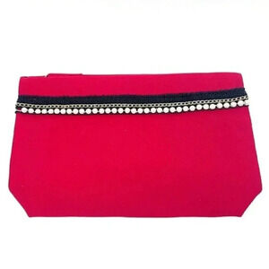 Lancome Red Elegant Beauty Bag with Black Pearl Stripe Accent
