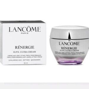 Lancôme Rénergie HPN Ultra Cream – 1.69 oz / 50 ml (New in Box) Experience high-performance anti-aging care with Lancôme Rénergie HPN Ultra Cream, a powerful moisturizer crafted to combat wrinkles, dark spots, and loss of firmness. Enriched with Hyaluronic Acid, Peptides, and Niacinamide, this advanced formula hydrates, lifts, and smooths the skin — revealing a firmer, more radiant complexi Full Size: 1.69 oz / 50 ml Targets wrinkles, firmness loss, and uneven skin tone Formulated with Hyaluronic Acid, Peptides & Niacinamide Lightweight yet deeply nourishing texture Suitable for all skin type Perfect for daily use to restore visibly youthful, revitalized skin.