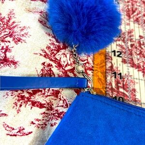 Lancome Royal Blue Cosmetic Bag with Puffball keychain! ultrasuede - like new