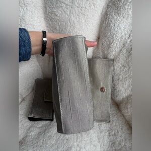Lancome Silver Makeup / Cosmetics Bag / Mirrored Insert