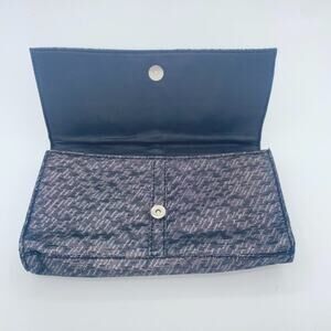 Lancome Silver Metallic Woven Fold-Over Magnetic Snap Button Clutch Wallet Purse