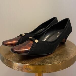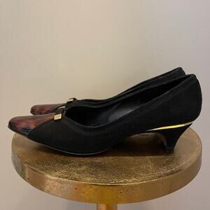 Lanconi Firenze 7.5B Kitten Heels | Black Suede, Tortoiseshell Toe, Rare Vintage