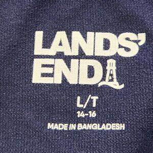 This is a long-sleeve shirt designed by Lands' End for moms in a navy blue color. The shirt is in size large and features a colorful design, making it a stylish and practical addition to any mom's wardrobe.