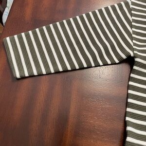 Land’ End women’s 3/4 sleeve waffle knit Tunic green and white striped size M P