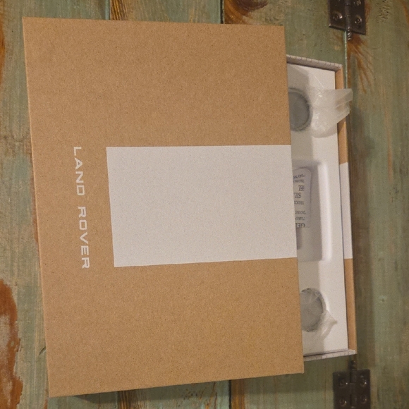 Land Rover branded brown box with white accents. Two new Land Rover key chains inside. Never used. All for one price