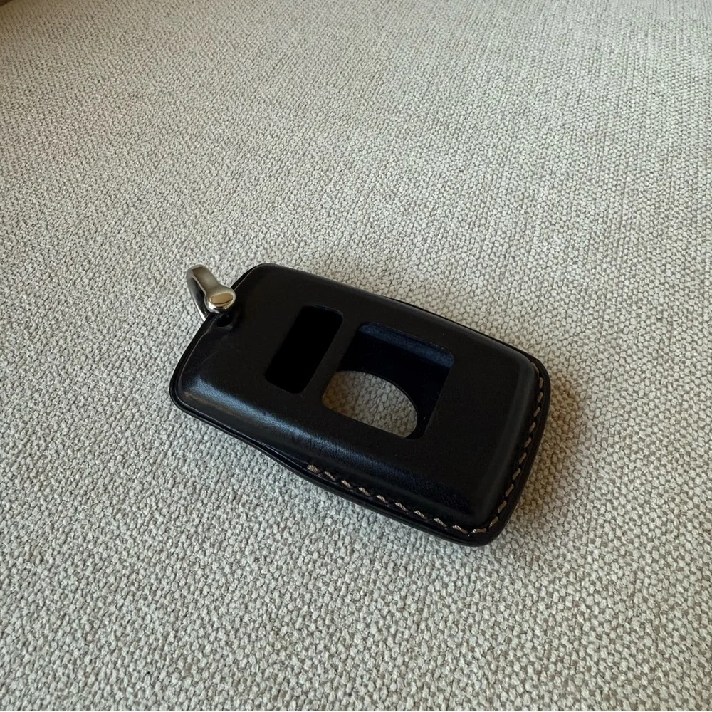 Protect your phone with this sleek black leather case. Designed for durability and style, it offers a snug fit and easy access to your device.