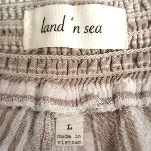 Land 'n Sea Womens L Tan Striped Linen Blend Pull On Capri Cropped Pants