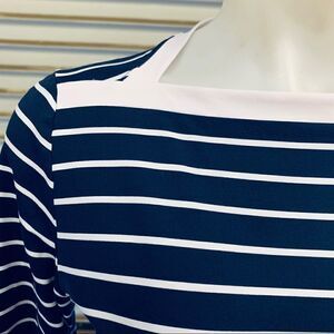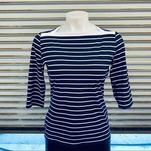 Land End boat neck stripped 3/4 sleeve top Gently used see photo's for more details Womens size XS H