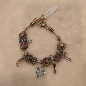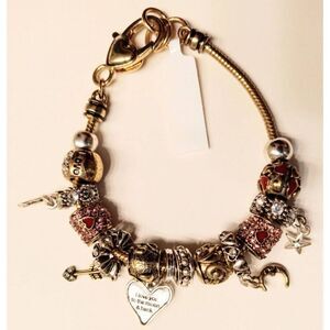 " I love you to the moon" bracelet by Landau.14 charms that slide and move on chain. Pink Rhinestones for sparkle some dangling charms spring ring clasp. Casual or dressy. Any special occasions. Gold and silver toned. 8" long. NWT
