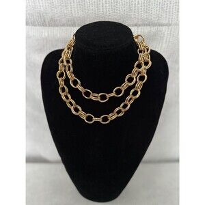 Add a touch of elegance to your outfit with this beautiful Landau double ring chunky chain necklace. The necklace is 36 inches long and features a round link chain type with a bar and ring closure. The necklace is perfect for any occasion and is available in a stunning gold color. The brand Landau is known for its high-quality jewelry, and this necklace is no exception. It is a must-have for any fashion-forward individual.