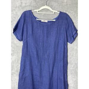 Lands Downunder Italy Linen Dress Small Blue Side Tie Lagenlook Boho Minimalist, with pockets. Great condition.