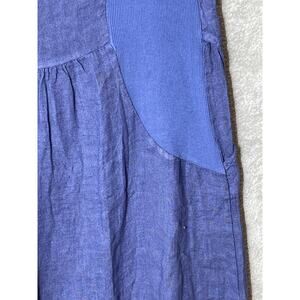 Lands Downunder Italy Linen Dress Small Blue Side Tie Lagenlook Boho Minimalist