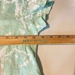 Lands Downunder Women S 100% Linen Dress Italy Green Abstract Print Side Slits