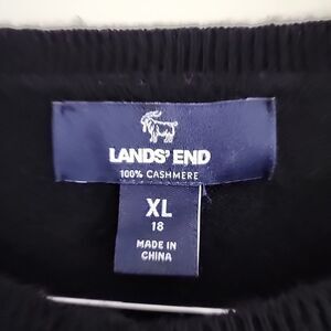 Lands' End 100% Cashmere Button Up Cardigan Sweater Women XL 18 Black Crew Neck