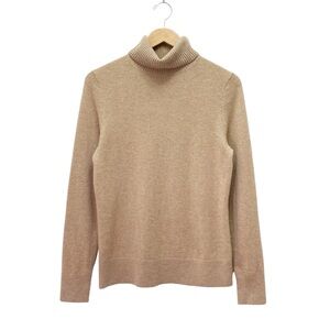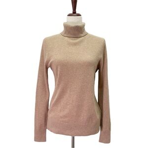 Lands’ End 100% Cashmere Turtleneck Sweater Beige Camel Tan Women’s Size Small