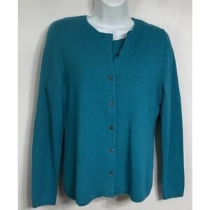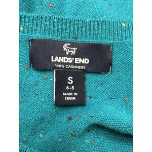 Lands End 100% Cashmere Women’s size small (6-8) cardigan button sweater and short sleeve matching sweater- twin set. Teal Blue Green color with colorful little speck balls all over. In good pre-owned condition. No holes stains or rips. Non smoking home.