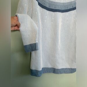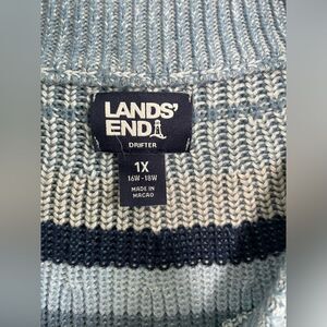 Lands’ End 100% Cotton Blue and White Knit Crew Neck Sweater SZ 1X