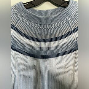 Lands’ End 100% Cotton Blue and White Knit Crew Neck Sweater