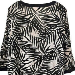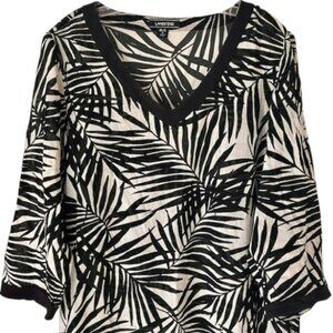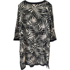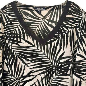Lands' End 100% Cotton Gauze Palm Print Swim Cover Up w/Trim - Black/Cream - 18