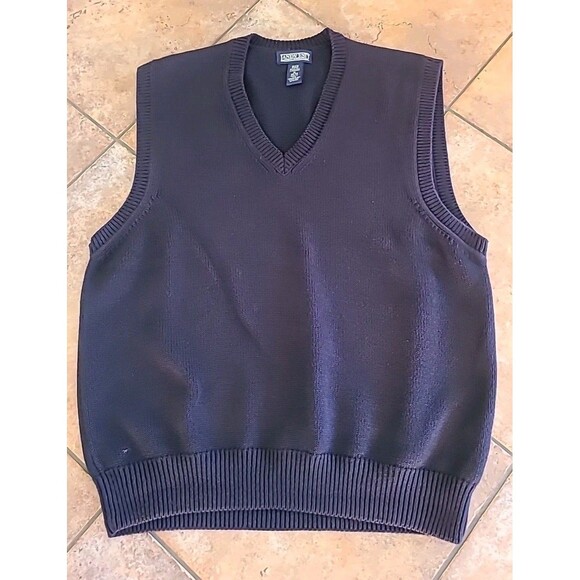 Land's End 100% Cotton Navy Vest Men's Med Preppy Casual Streetwear Fall Grandpa