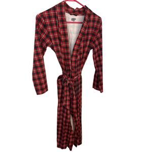 Lands' End 100% Cotton Red/Navy plaid Bathrobe size XS/2-4