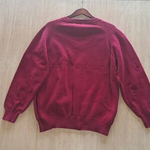 Lands' End 100% Cotton V-Neck Knit Ribbed Sleeves Sweater Relaxed Fit Pullover