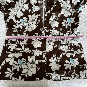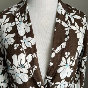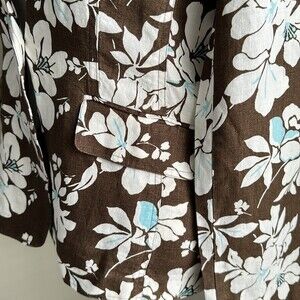 Lands End Brown White Floral Print Jacket Women's Linen Blazer Classic Boho