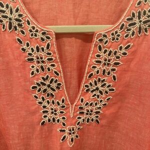 Land's End 100% Linen Coral Tunic Top Embellished Coastal Relaxed Resort Size 1X
