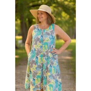 Lands’ End 100% Linen Tropical Shift Dress Resort Cruise Vacation Loungewear LP