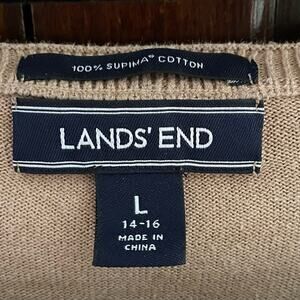 Lands' End 100% Supima Cotton 3/4 Sleeve Sweater Women's L | Taupe