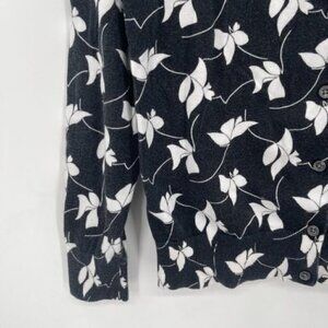 Lands end button front long sleeve novelty leaf print black & white cardigan sweater