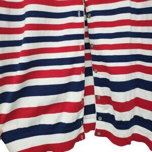 Lands End 100% Supima Cotton Navy Blue Red White Stripe Button Front Cardigan 2X
