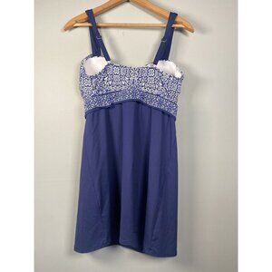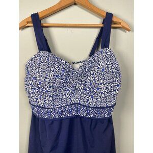 Lands End 12 Tankini Swimsuit Top Blue Floral Womens Underwire Beach Cruise