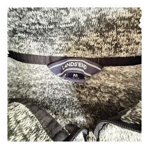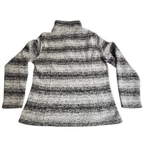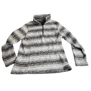 Lands End 1/4 Zip Black Gray Heather Striped SWEATER Women's MED L Fleece Pullover TOP - New Condition!