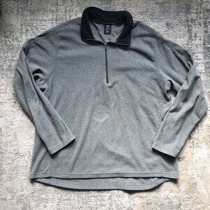 Lands' End 1/4 Zip Fleece Sweater Adult XXL Gray Pullover Men's 2XL Black Collar